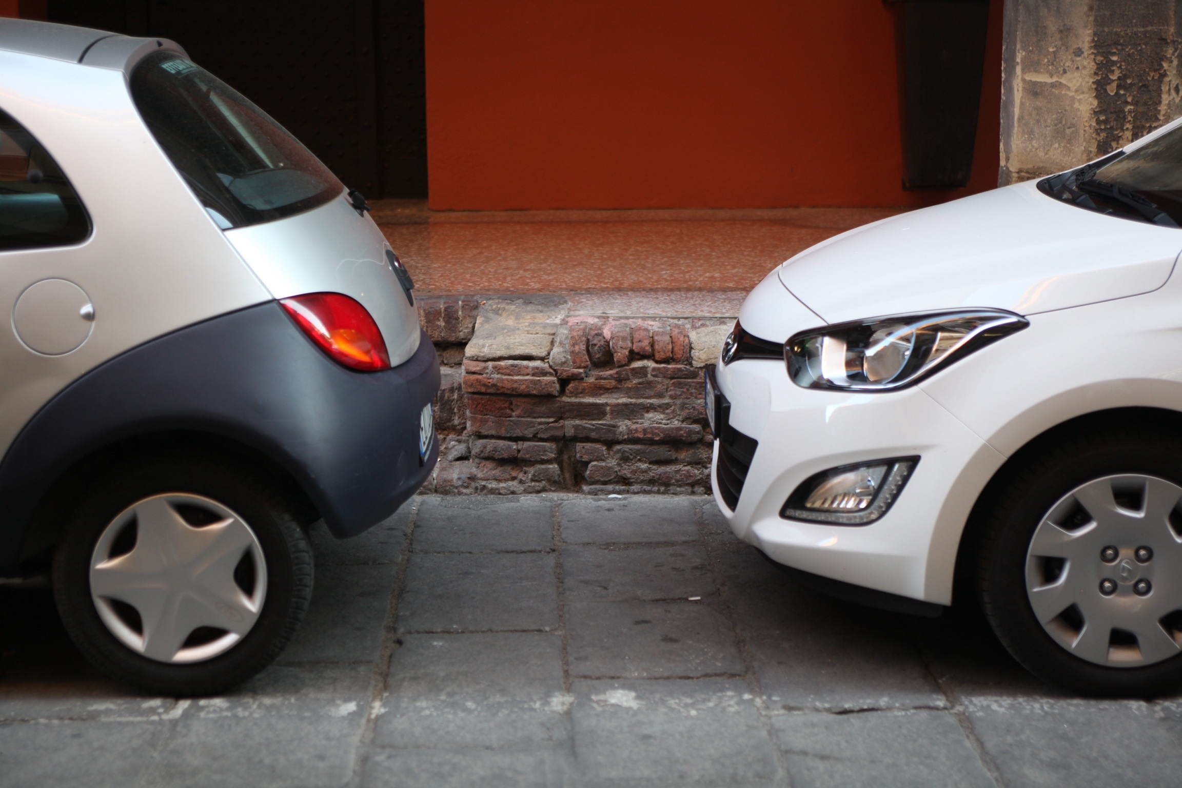 Curbs in many Italian cities are quite high, perhaps dating back to the days of horse drawn carriages and less sophisticated drainage systems. The high curbs of Bologna play an important part in this story. Exhausted by the day’s experience in “Driving in Bologna I,” we made our way to our hotel, finding a parking spot in a perfect location, near the hotel and not in an isolated area. It was a small space but with a little effort the car just fit, a little close to the curb but no matter. We were happy to be rid of the car for the evening. The hotel was pleasant enough. We checked in, dropped our bags and went in search of an osteria. Over a nice carafe of house wine and a meal of the delicious cuisine of Emilia Romagna, we recapped the adventures of the day and marveled that we escaped with nothing more than the cost of a new tire and a good story.